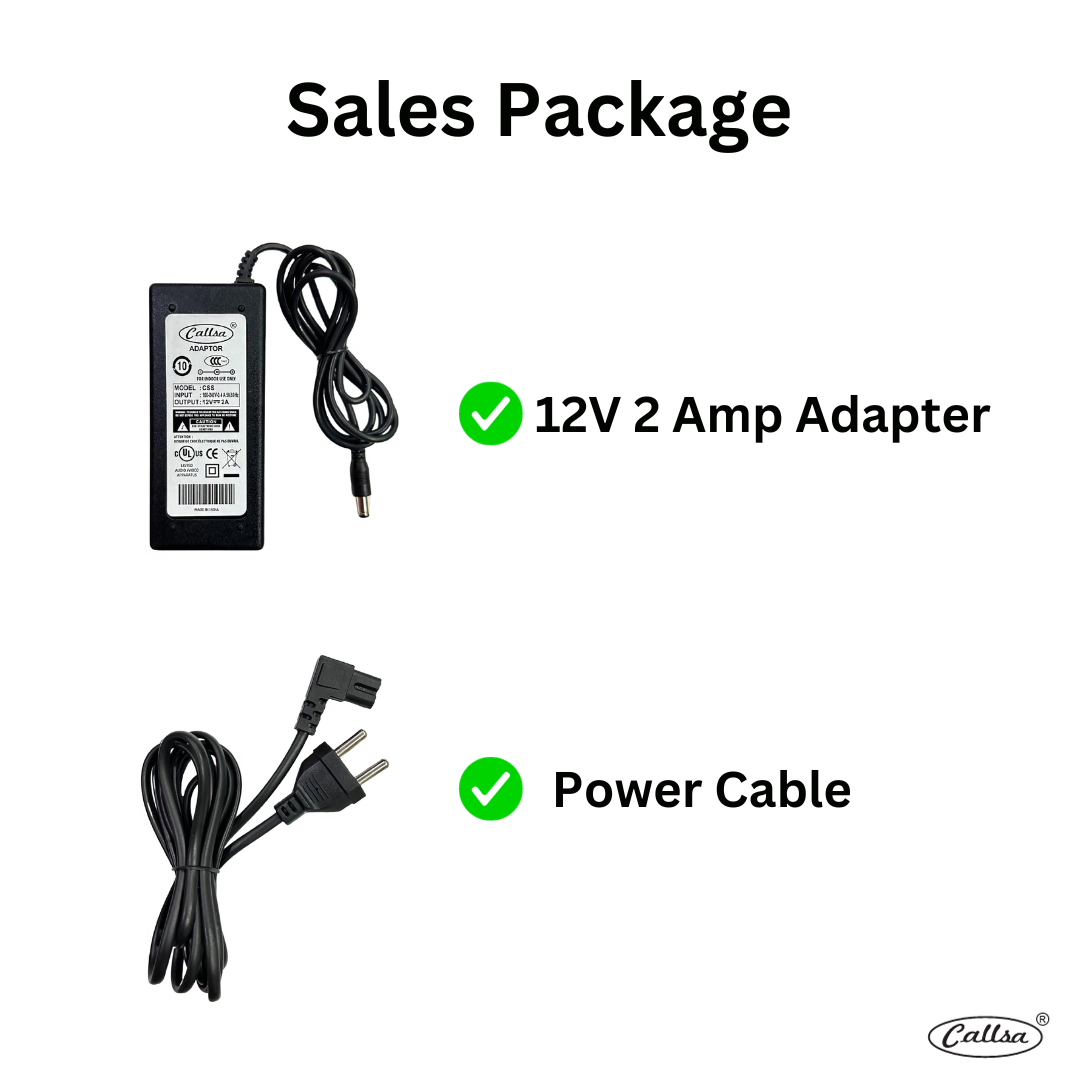 CALLSA 12 Volt 2 Amp DC Power Adapter, Power Supply, SMPS for CCTV, LED Monitor, TV, LED Strip, Routers, Broadband, Set top Box, NVR, (Input: 220V-50Hz 50Ma Output 12V 2Amp)