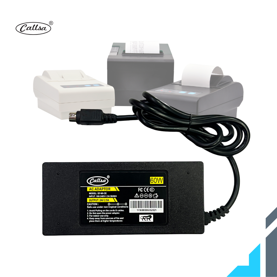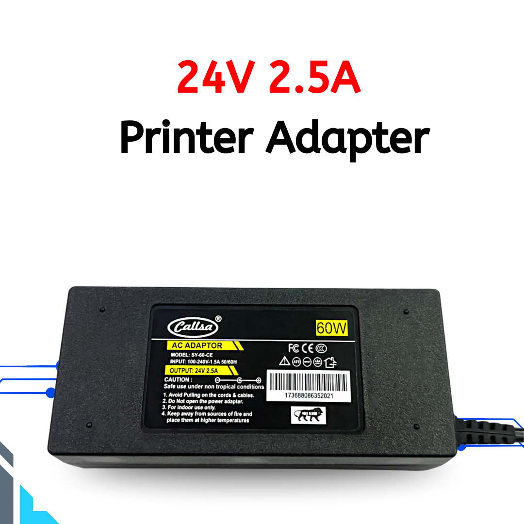 CALLSA 24V 2.5A Thermal Printer Adapter with Power Cord, Barcode Printer Adapter, Power Adapter (Input : 240V-50Hz 50mA Output 24 Volt 2.5 Amp) Black