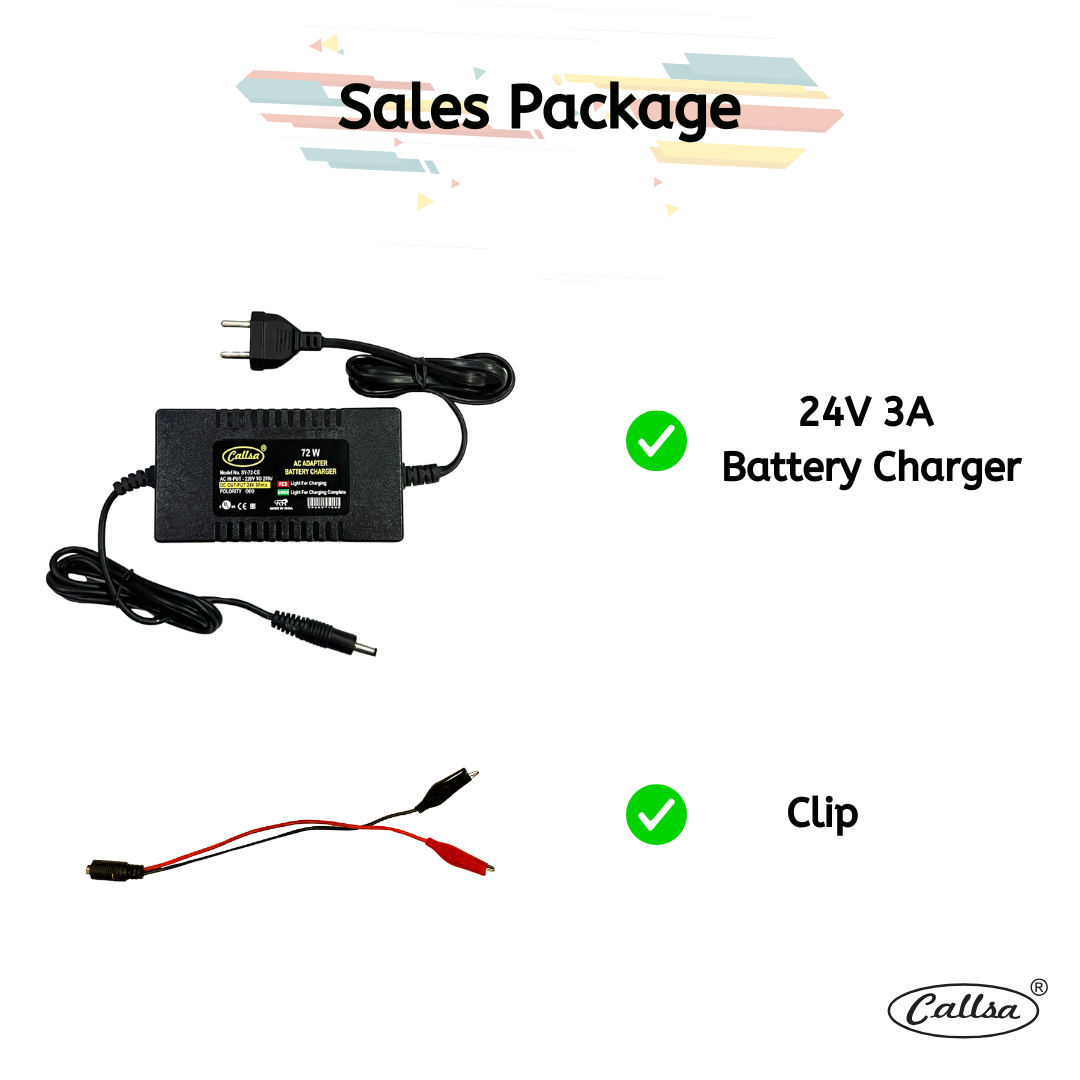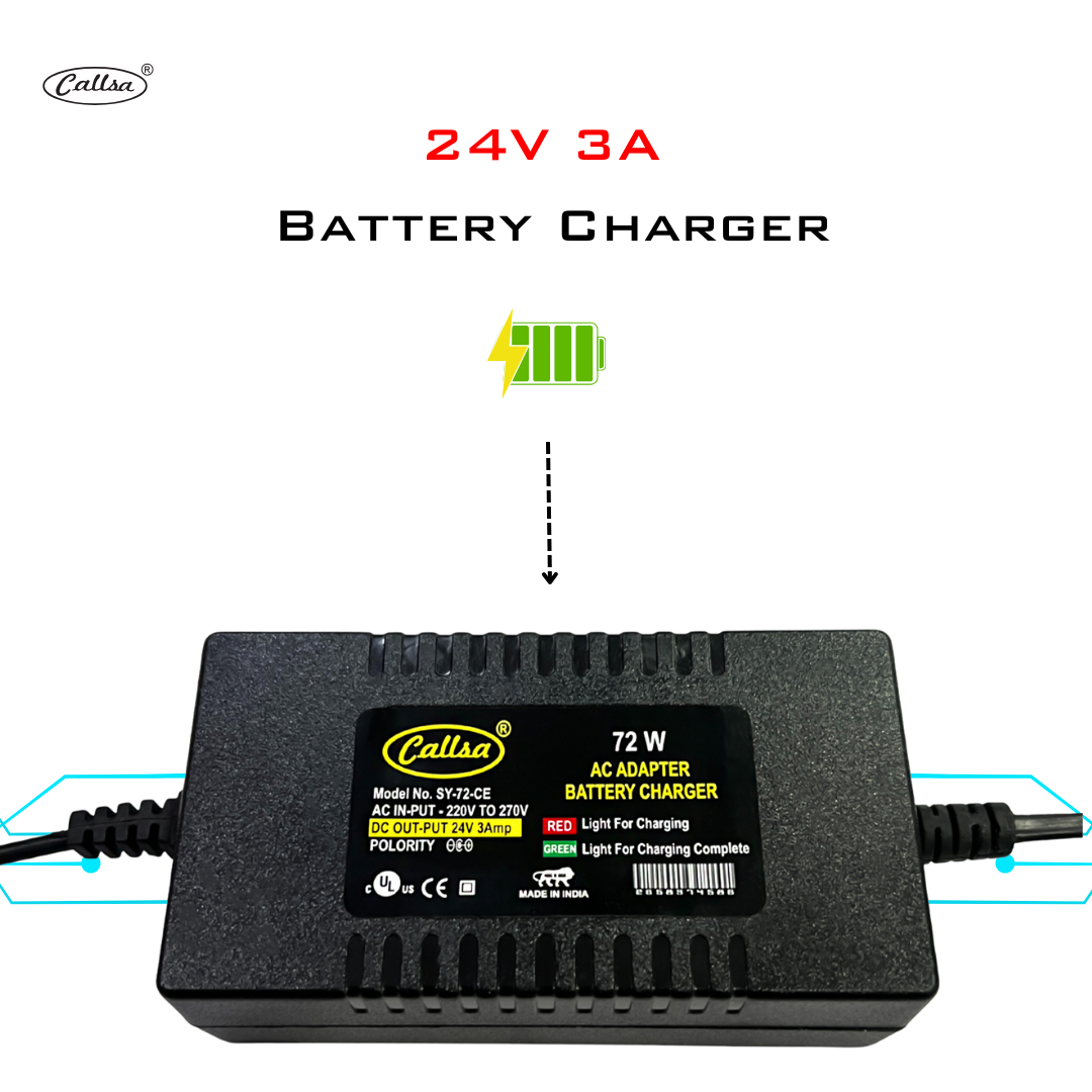 CALLSA 24V 3Amp Fast Battery Charger with Auto-Cut Off for Lead Acid, Phosphate, Lithium ion Battery (AC Input 240V 50Hz Dc Output 24 Volt 3 Amp) Black