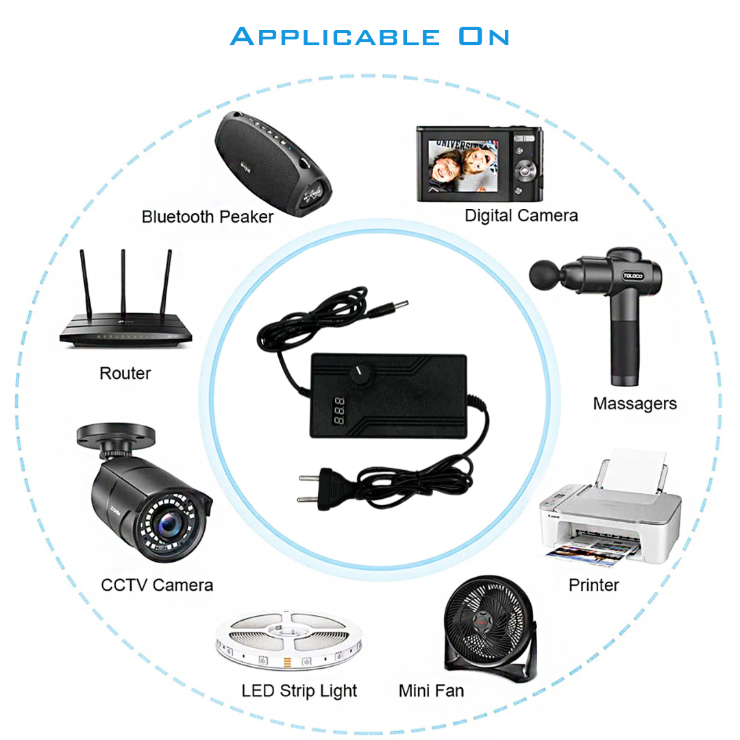 - SPECIFICATION: 100V-240V 50/60Hz; Output: DC 1.5V-24V 3Amp Max