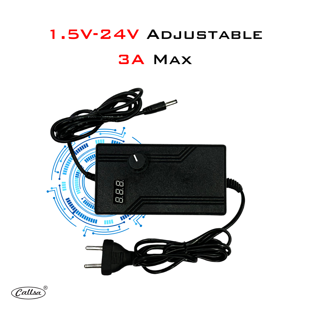 Callsa 72W 1.5V-24V Adjustable Power rfd, Power Supply with LED Voltage Display and Variable DC 3v 4v 6v 8v 10v 12v 14v 16v 18v 20v 22v 24v, It Suitable for Household Electronics – 3Amp Max